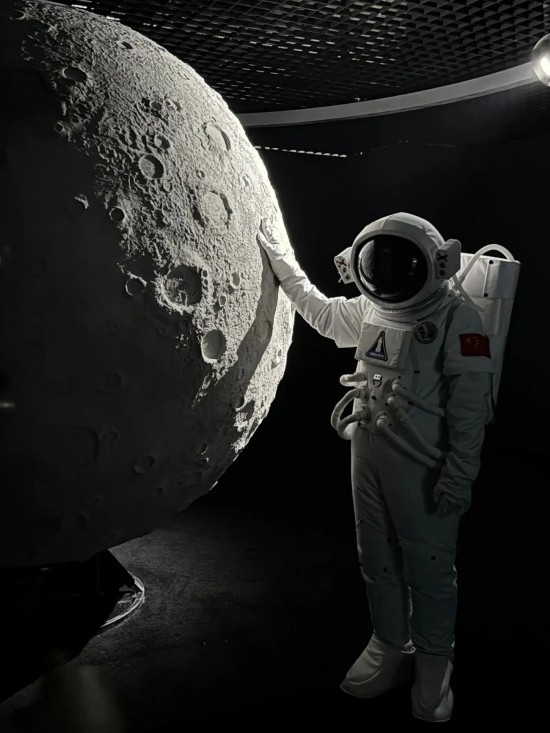 A馆“已至之境”分为向往、火箭启程、星河万花筒、星际桥梁、航天步伐、放映厅等8大展区,展出1:1高精还原的航天装置、定制航空展品,更有巨型仿真月球呈现月面真实质感。