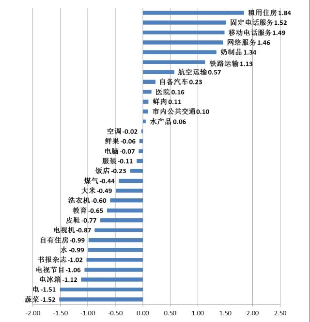 与2015年相比,2016年30个规格品满意度指数12升18降。按照升幅从高到低排列,位于前5位的是:租用住房、固定电话服务、移动电话服务、网络服务和奶制品,其满意度指数分别上升了1.84点、1.52点、1.49点、1.46点和1.34点。按照降幅从高到低排序,位于前5位的是:蔬菜、电、电冰箱、电视节目、书报杂志,其满意度指数分别下降了1.52点、1.51点、1.12点、1.06点和1.02点。
