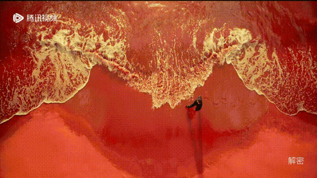 美术与道具团队耗时1个月制作出105吨染色红沙,使用造浪机模拟真实的海岸线,与南光携手研发巨型灯架、打造超现实光影效果,以虚实结合的拍摄手法呈现绚烂瑰丽的红色沙滩。